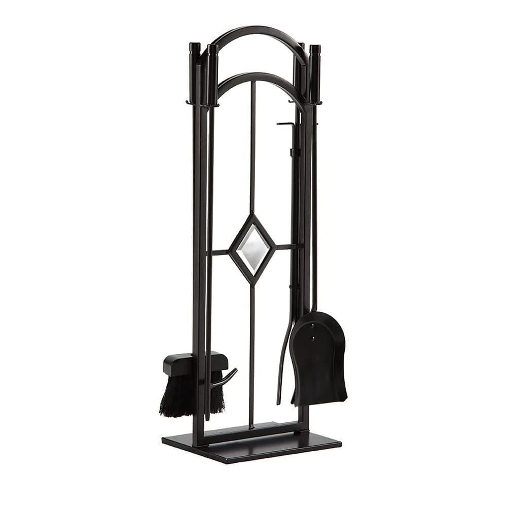 The 5 Piece Diamond Fireplace Tool Set in Espresso takes a traditionally bland accessory and elevates it with its sophisticated and elegant design. Crafted from durable steel and featuring a centrally located, beveled glass diamond, this beautiful accent will bring the perfect decorative element to your fireplace hearth. The set includes a poker, shovel, brush, tong and stand. This item is backed by a 1-Year Limited Warranty.