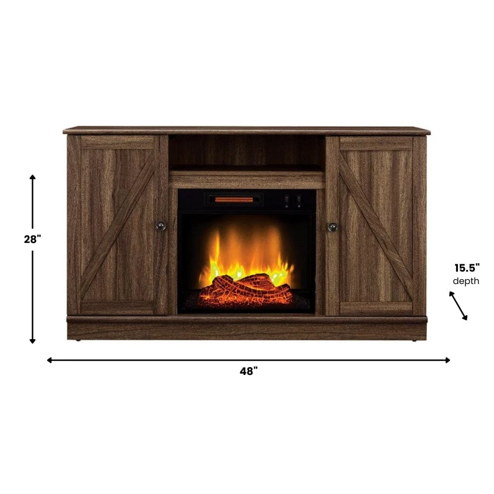 The Alexander Electric Fireplace Media Console is wonderful piece of furniture for your television setup. With its stylish farmhouse look and “z” patterned doors, the Alexander is sure to provide a welcoming appeal to your space. The top center shelf is ideal for housing your cable box, DVD player and other electronics, while the two side cabinets offer additional storage space. Store your DVD collection or other electronic/accessories behind the barn-styled, pull cabinet doors. The cabinet also features integrated cord management channels so you’ll be able to keep all your wires and cables neat and tidy.