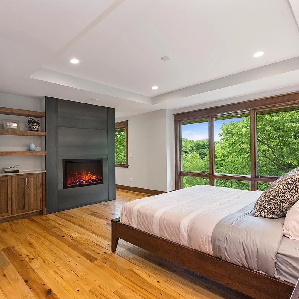 The Amantii 38-in Traditional Bespoke Smart Electric Insert “ticks” all the marks when it comes to features consumers have been asking for. Featuring impressive and vibrant flame effects, multiple media bed options, integrated speakers and crackling fire sound effects, plus Wifi Integration, the Bespoke Series has so much to get excited about. With two flame patterns and multiple flame color choices, you can create a look and mood that fits your space with ease. Additional customization comes into play with the choices of ember bed media kits and trim kits available to “finish off” the final look of your fireplace. This advanced insert also features integrated speakers for quality audio that delivers a crackling fire sound, sampled from real fires, to enhance the overall realism of the fireplace. And its the integrated WiFi capabilities that really take this unit over the top. Using WiFi (& the Amantii App) you’ll be able to operate the fireplace from any room or even when you aren’t even home – Set the fireplace to turn on before arriving home, or have it turn on automatically when the weather is cold. With WiFi & the Amantii App, the customization possibilities are practically endless!