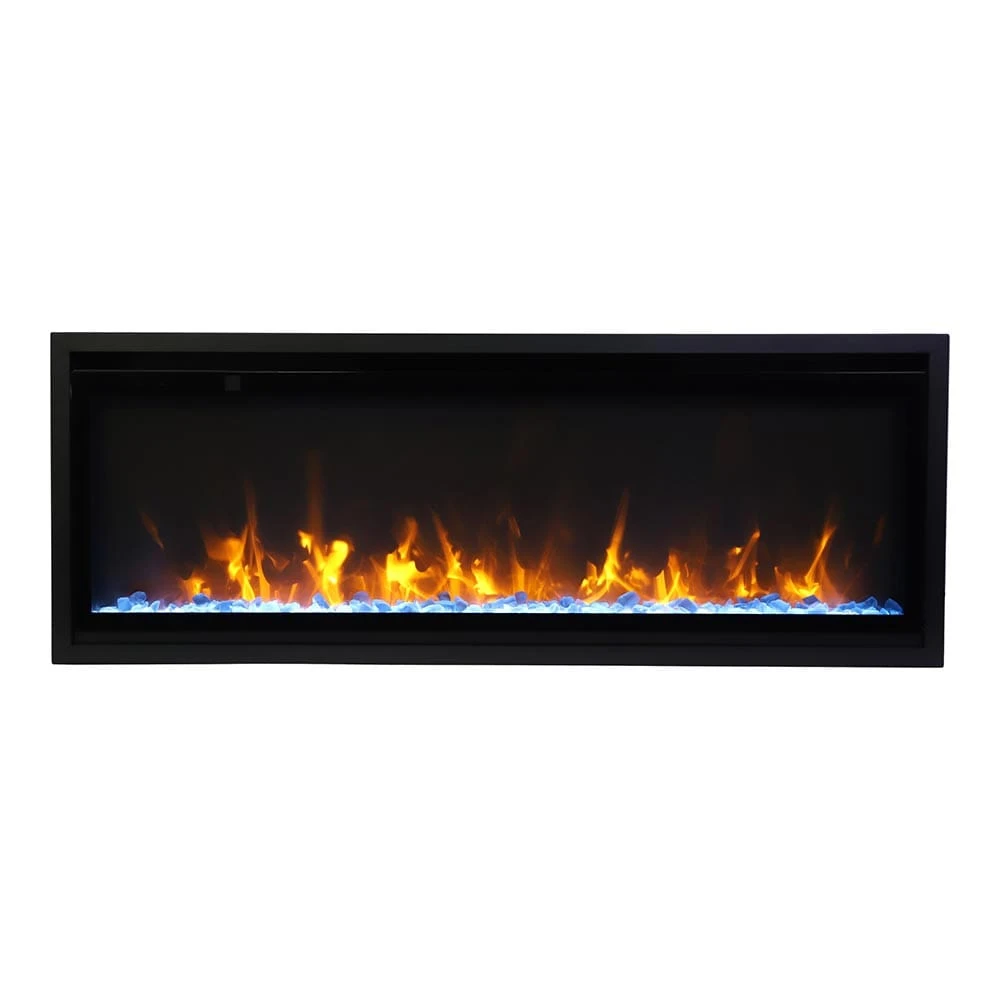 The Amantii 42-in Symmetry XtraSlim Smart WiFi Linear Electric Fireplace is the perfect addition to any contemporary home. This sleek and stylish fireplace can be mounted or recessed into any 2” x 4” wall and has WiFi control options with the a downloadable mobile app. The beautiful flames dance across the back of the fireplace, providing a warm and inviting atmosphere that is sure to charm your guests. With 11 multi-colors of ember bed lighting, 3 flame color options with 5 settings in each color, plus 3 speed options, this fireplace provides an unmatched level of customization and flexibility. The flame options include yellow, orange, and red and come with 5 settings each so you can cycle through them as you please.