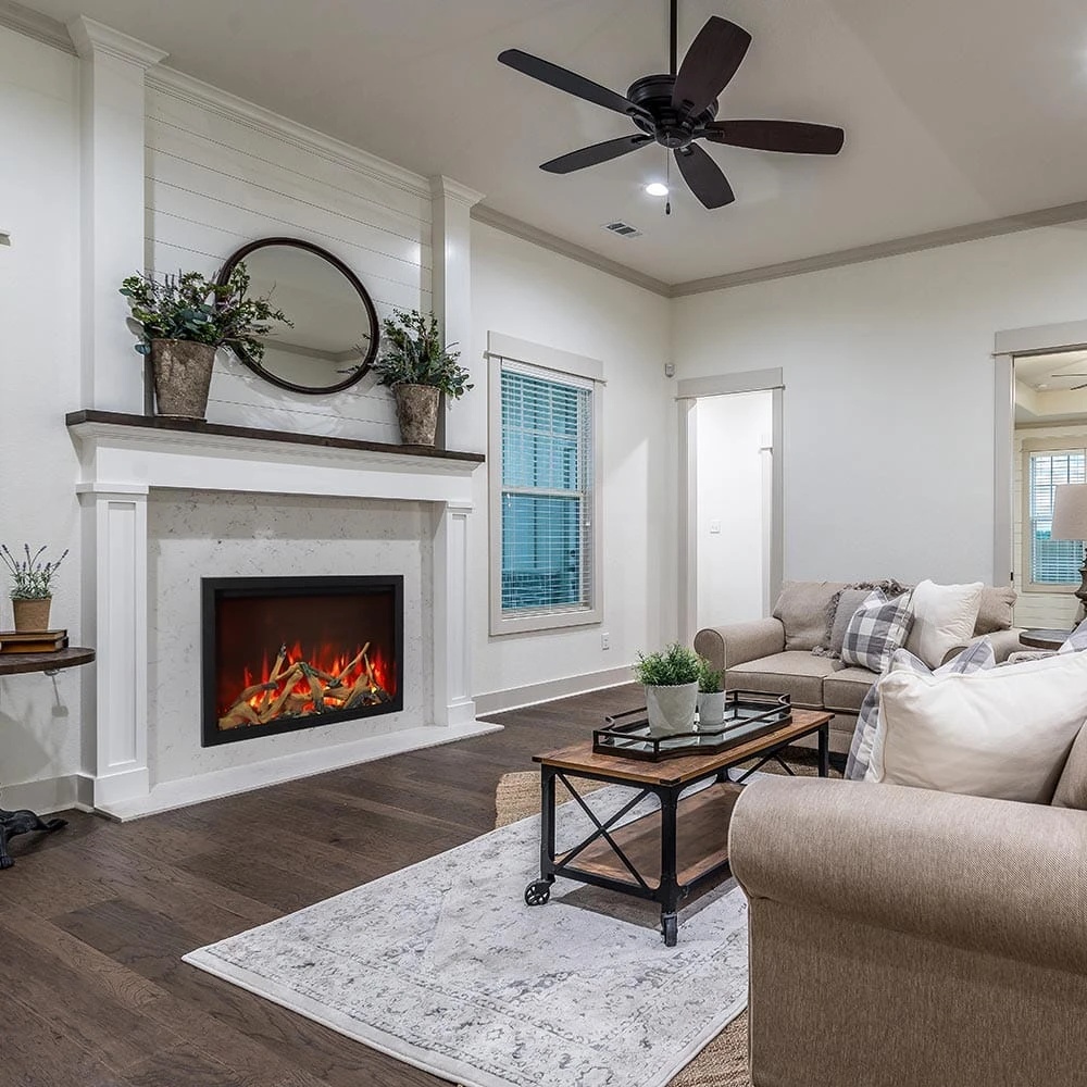 So we have the look and the sound of a fire, but what about the warmth of a fire? Yup, this insert checks that box too. The powerful, fully integrated supplemental heater can warm up to 400 square feet with the simple press of a summary. The concealed heater vents in the upper top of the unit which helps to maintain that clean appearance to the front of the fireplace – no unsightly vents here! Plus, when additional heat isn’t needed for your room, simply turn off the heater to continue enjoying the ambient glow from the dancing flame effects. Whether you’re looking to add a touch of luxury to your home or simply want a cozy place to relax, the Amantii Traditional Bespoke Smart Electric Insert is the perfect choice.