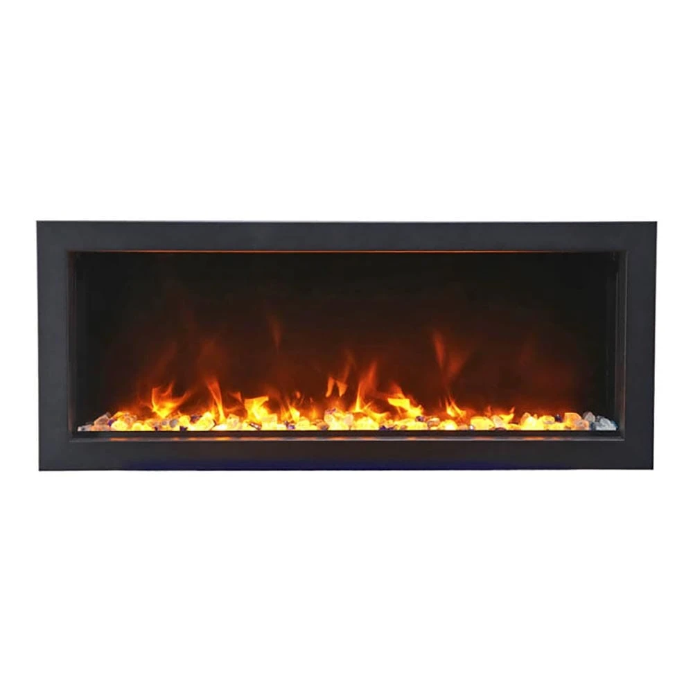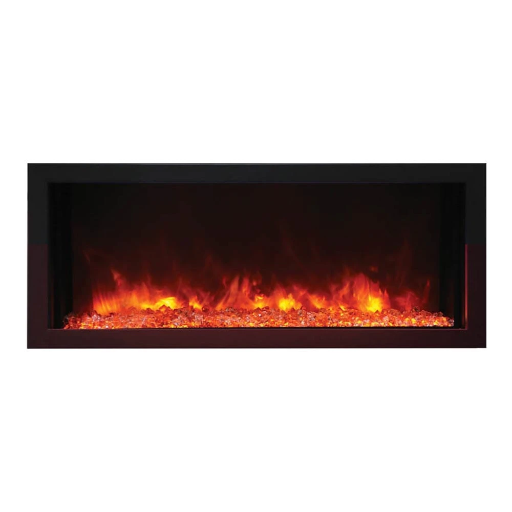 The Amantii Panorama Series 30-In Extra Slim Built-In Electric Fireplace was created to fill the needs of those consumers looking for a modern look, but have restrictions due to the wall construction within their homes. Requiring just 4-inches to recess within your wall, the Panorama Extra Slim fits practically any drywall application. The unit is designed to be fully recessed, and can be installed with your finishing material coming right to the edge of the glass or with the included black trim piece. Another unique feature of this unit is that it can be used both indoors as well as outdoors! Just be sure to install the unit in a covered area if you select an outdoor location. Whether installed indoors or out, one thing that will remain the same is you’re going to love the added ambiance it will bring to your space. The realistic flame effects are created using energy efficient LED lighting, and can be easily adjusted to suit your mood or tastes. Whether you’re looking for a soothing and calming atmosphere, or something a little more dramatic, this fireplace has it all.