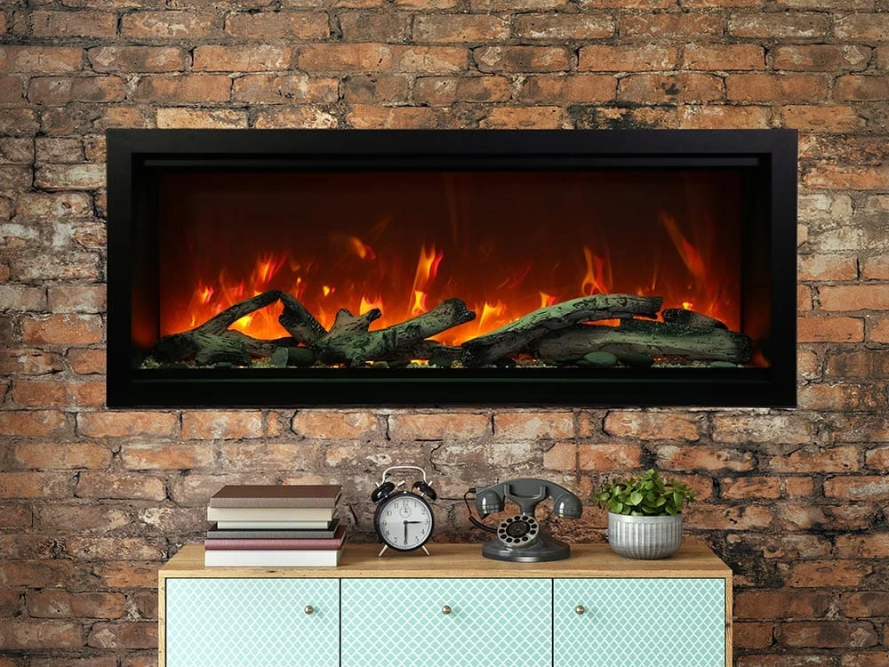 The Amantii 50-in Symmetry XT Bespoke Linear Electric Fireplace is proportioned to fit in great rooms and commercial settings. The SYM-50-XT-BESPOKE has Wifi and Bluetooth connectivity. Delivering tall, full flames, it draws attention in any room and can be customized – from contemporary to traditional, with media and log set options.