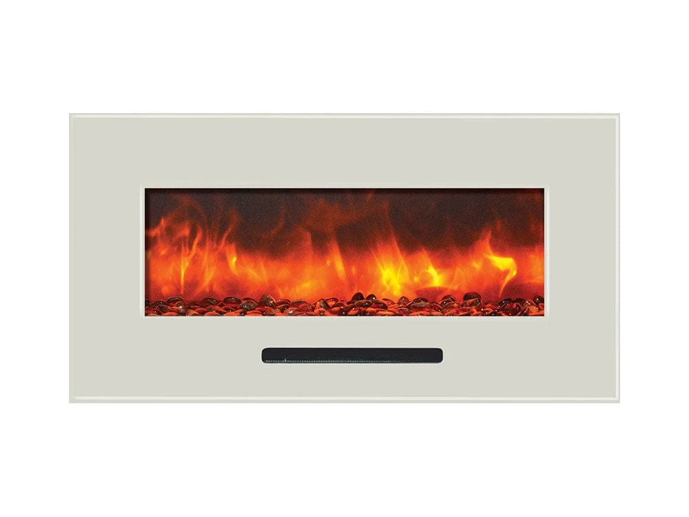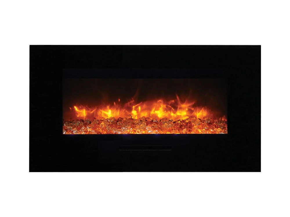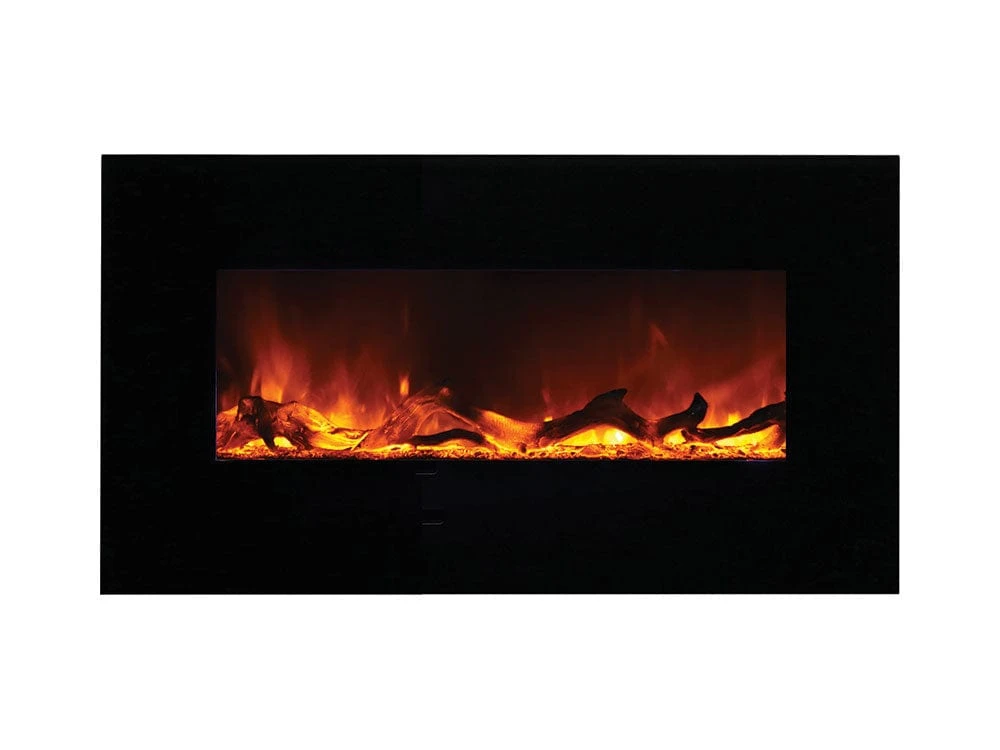 Give your room a designer inspired, contemporary look with the addition of the Amantii WM-FM Series 34-In Built In or Wall Mount Electric Fireplace. This bold yet elegantly designed fireplace can be simply mounted on your wall or fully recessed for a seamless, streamlined appearance. The artistically styled flame effects are a stunning display of gently rolling flames that create “art in motion” for an impressive overall effect. Change the color of the flames as often as you’d like with options of yellow, orange, and red. Add even more ambiance with any of the 13 backlight color options that project from all 4 rear sides of the unit. The linear fireplace comes with a driftwood log set for a charming, traditional appeal.