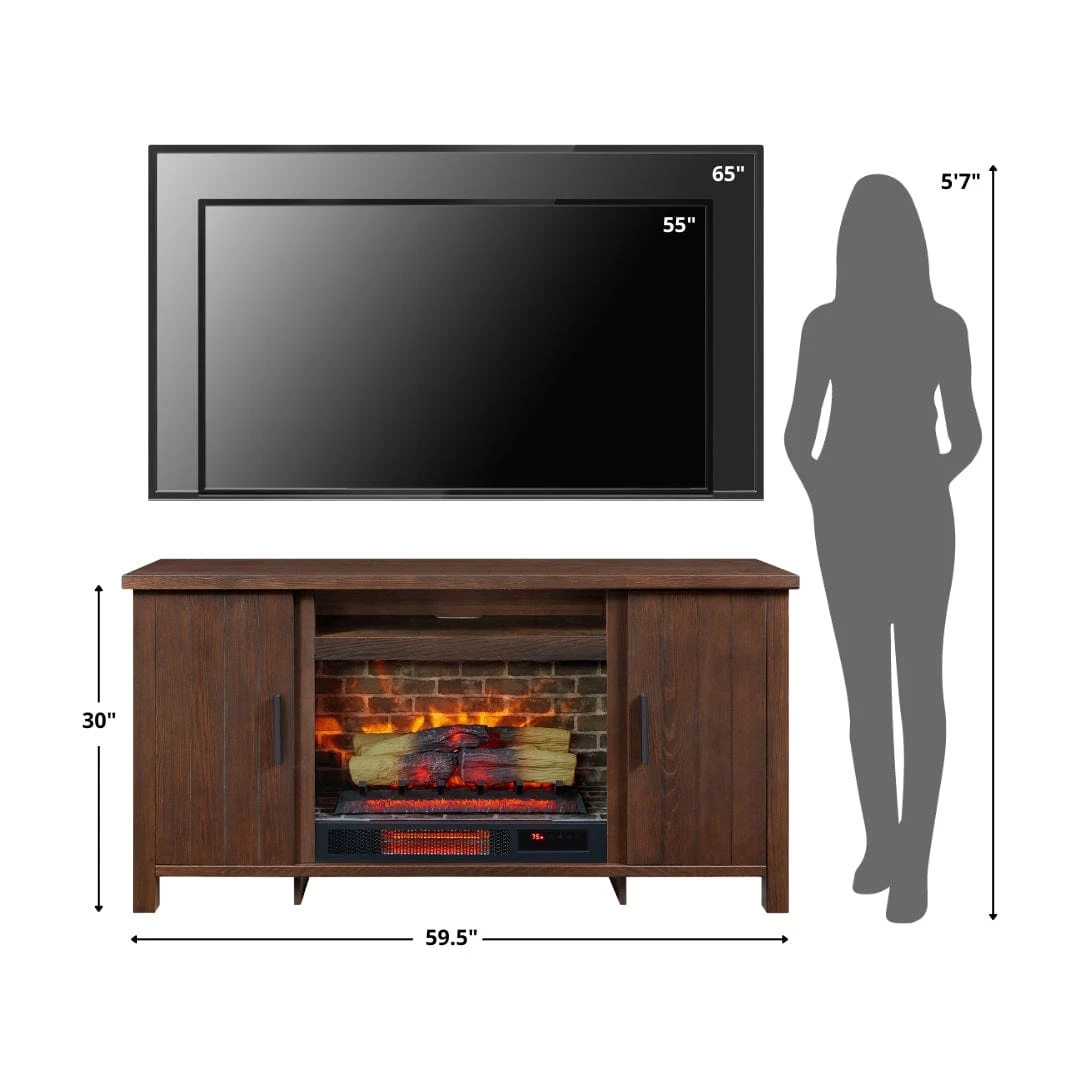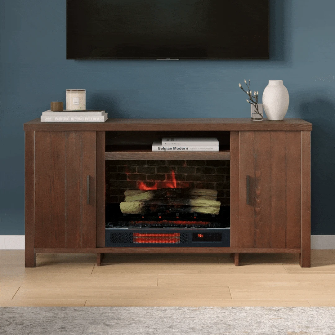 Brinley 60-in Rustic Brown Electric Fireplace TV Stand