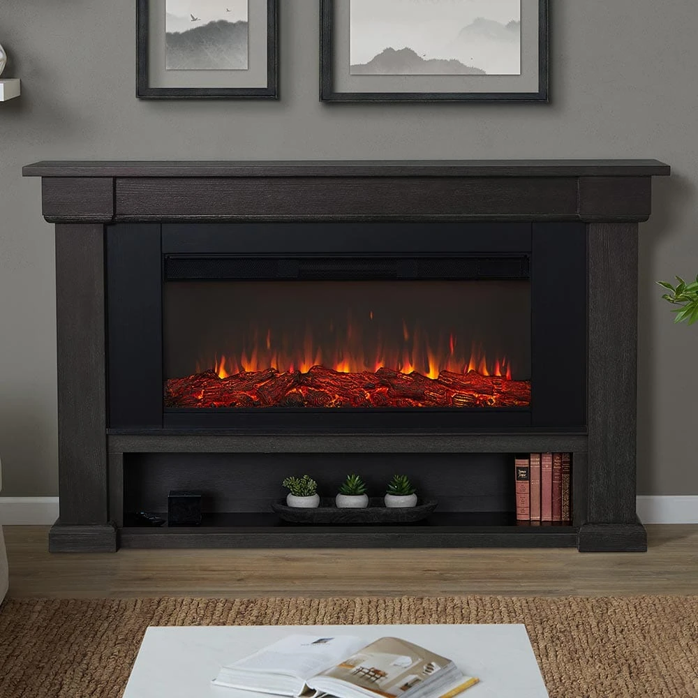 Real Flame’s Bristow provides classic hearth charm with modern electric fireplace desirability. Featuring an elegant mantle that fits seamlessly with most design aesthetics, the Real Flame Landscape Series widescreen electric firebox features six attractive colors in five flame brightness levels to suit your space. A storage shelf with removable decorative split logs completes the look of this electric fireplace mantel.