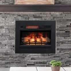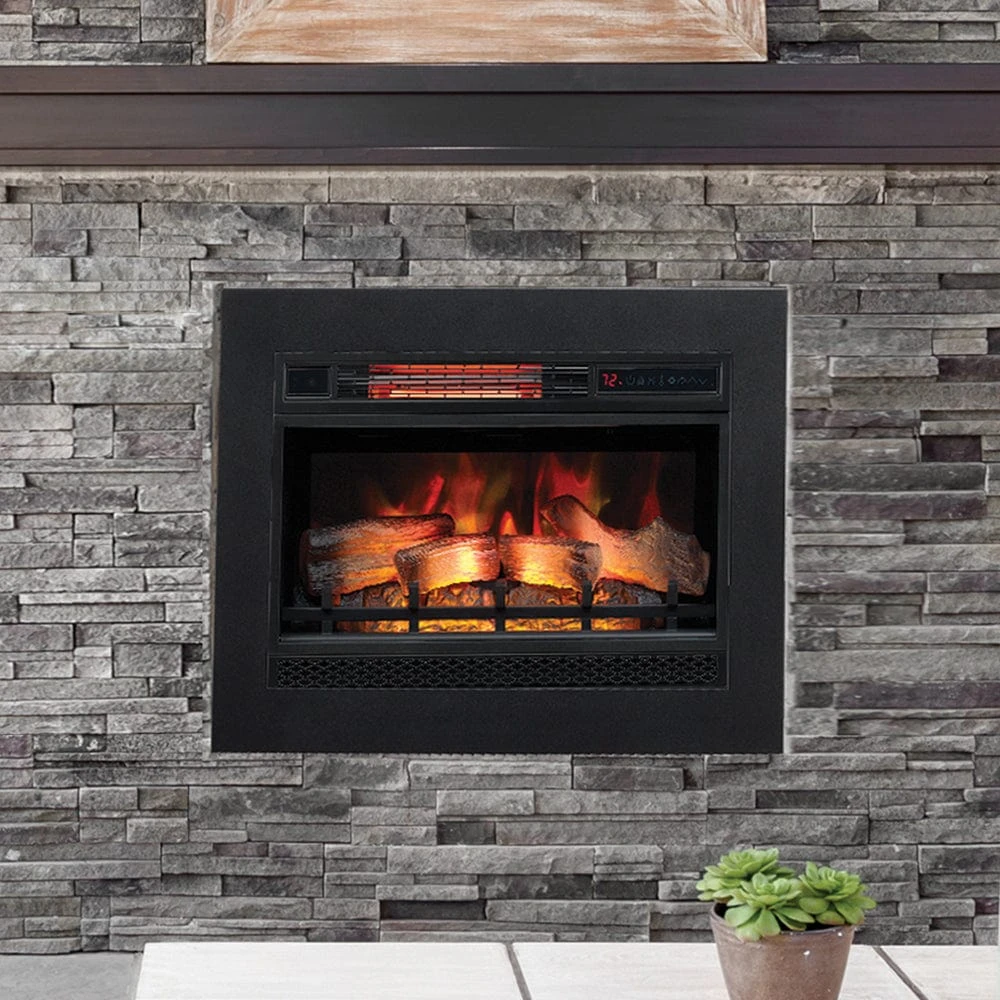 The ClassicFlame 26″ 3D SpectraFire Plus Infrared Electric Fireplace Insert creates a highly realistic flame effect and features a powerful supplemental heater. This electrical fireplace utilizes ClassicFlame’s new 3D SpectraFire Plus technology which produces a stunning and dimensional flame with the option of 5 flame colors, 5 brightness settings and 5 flame speeds. The unit makes use of LED lighting which means you’ll likely never have to worry about a burnt out bulb over the lifespan of your unit. The firebox also features a powerful infrared quartz heater that creates instant supplemental heat for up to 1,000 Sq. Ft. In most cases, this is more than enough heat to take the chill out of your room. An added benefit to infrared heat is that unlike traditional fan-forced heaters, infrared works with the natural humidity of your room and will not dry out the air or reduce oxygen levels. This is ideal for those with asthma or other respiratory issues.