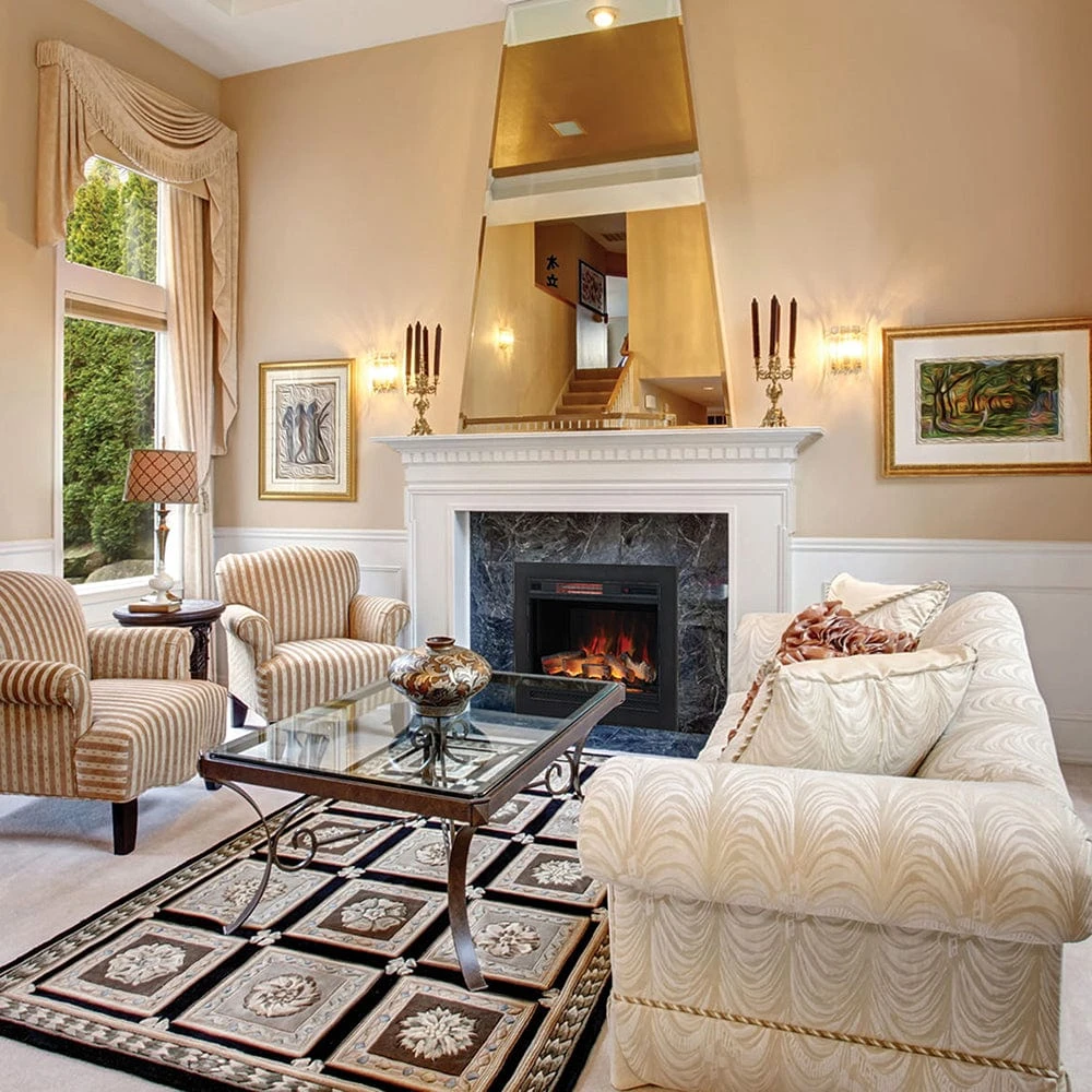 You’ll love the instant ambiance this unit creates in your room with just the simple click of a summary. The fireplace includes a black trim kit which easily fills the gap between the edges of your fireplace and the firebox itself. This creates the perfect finished look for your fireplace. The ClassicFlame 28-In Infrared Electric Insert w/ Trim Kit is the perfect solution for anyone looking to turn the eye sore of an old fireplace into a stunning, functional fireplace.