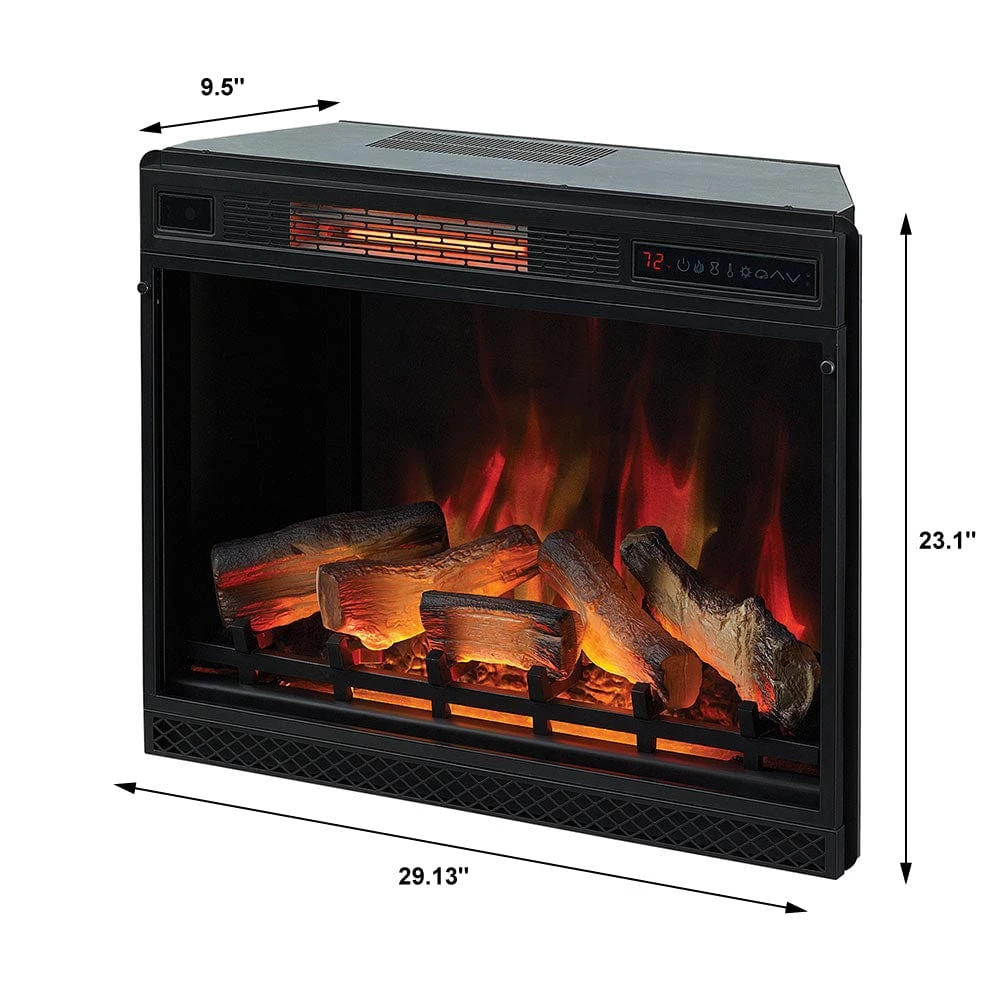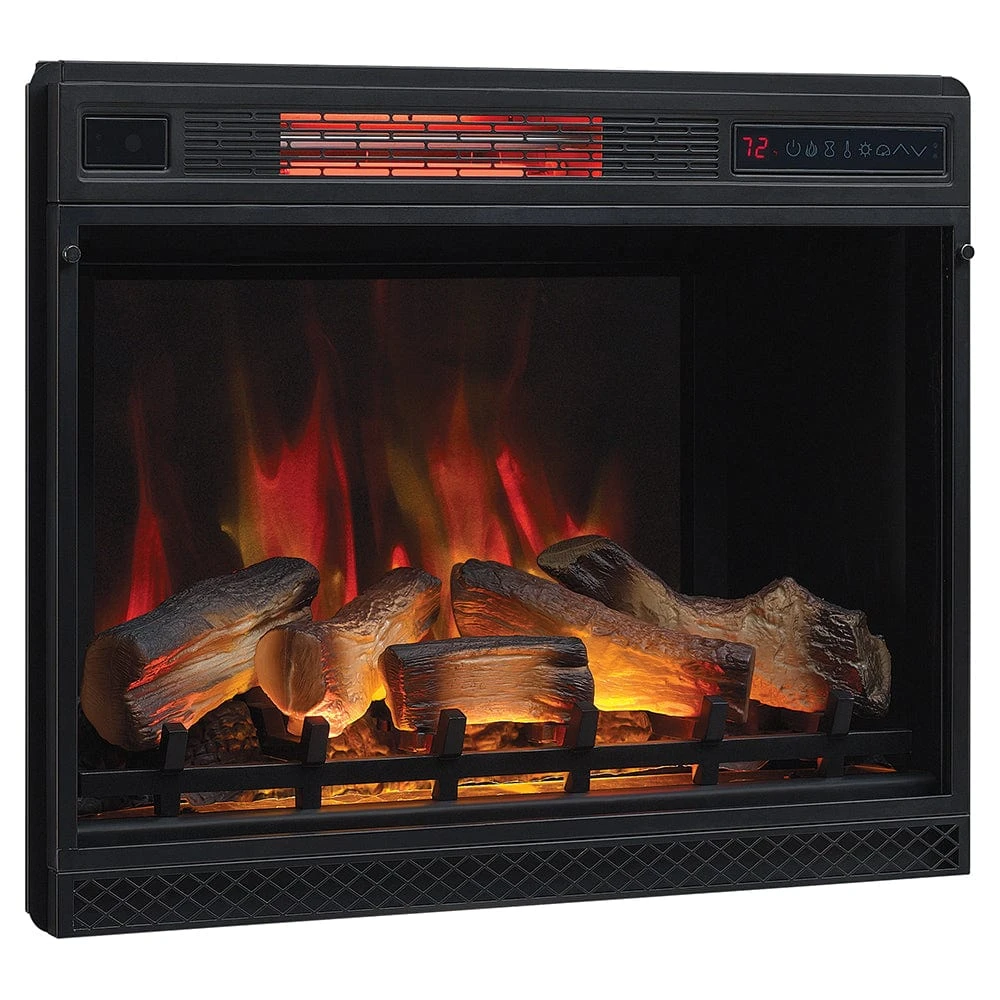 The ClassicFlame 28-In 3D SpectraFire Plus Infrared Electric Insert & Trim Kit is ideal for easily converting existing wood or gas fireplaces into an energy efficient and hassle-free fireplace. Or for adding a new fireplace into a wall or mantel cabinet. This newly introduced firebox utilizes 3D flame effects that shine from within and behind the log set for the illusion of a real burning fire. The resin cast logs have been finished to look just as good when the unit is on as it would when it is off. The firebox features the patented SpectraFire Plus flame effect that allows you to customize the look by selecting 5 flame colors, 5 flame speeds and 5 brightness levels. For added convenience, the unit also features an on/off timer which provides peace-of-mind when using the fireplace before bed. You will have no trouble staying warm with the supplemental heat created by the powerful quartz infrared heater which easily warms your room up to 1,000 Sq.Ft. in size. Alternatively, the unit can be enjoyed without heat, simply running the flame effects for use during the warmer months of the year.