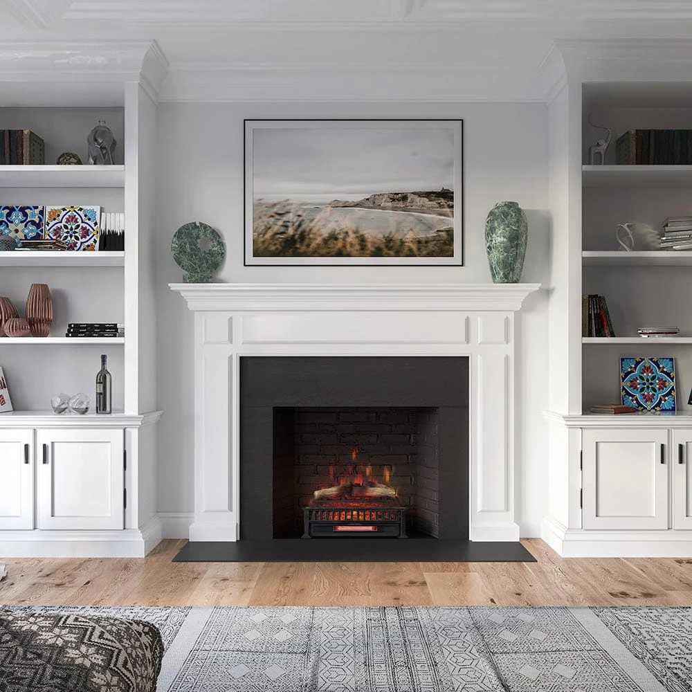 Designed exclusively for Country Living, this electric log set is designed to give the feeling that you’re curled up next to a wood burning fireplace. This log set is built with supplemental heat capable of warming up to an impressive 1,000 square feet and adjustable flame brightness that allows you to set your desired mood. This log set incorporates LED light technology providing a realistic flame effect while consuming less energy.