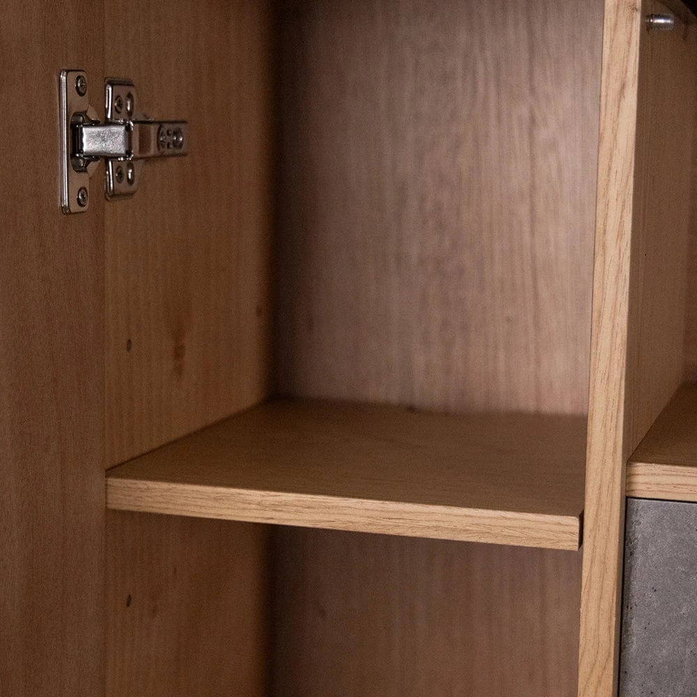 Designed for both function and style, the sturdy construction features a five-leg support system, ensuring durability. Adjustable shelves behind two side cabinet doors provide ample storage for media accessories, books, or décor. Conveniently control the fireplace settings with the digital thermostat, built-in timer (up to 9 hours), or included multi-function remote, allowing you to customize your comfort with ease.
