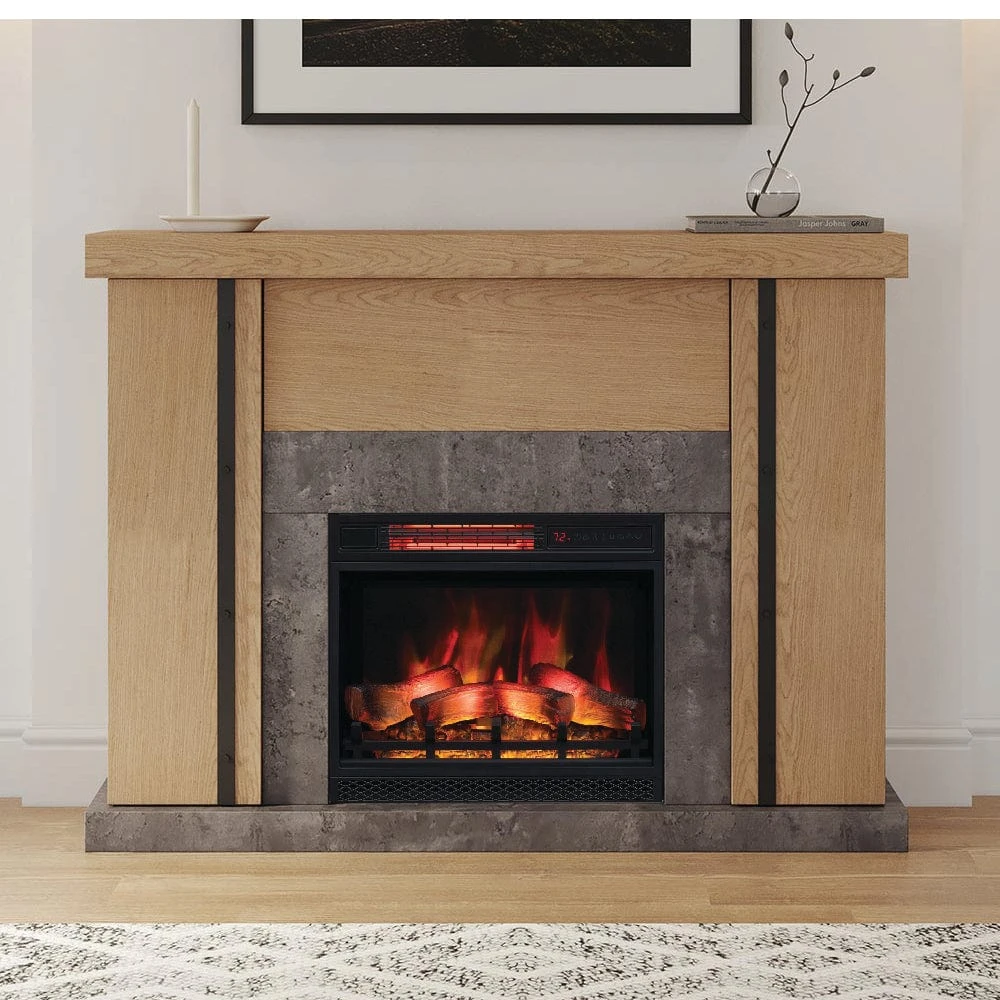 At the heart of this package is an 18-inch compact electric fireplace insert, offering an inviting flame display with two flame colors and three brightness settings. The infrared heater provides supplemental warmth for up to 1,000 sq. ft., making it an ideal addition to living rooms, bedrooms, or cozy gathering spaces. Enjoy year-round ambiance with the option to operate the flames with or without heat.