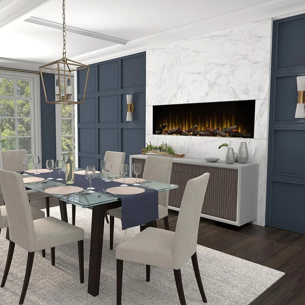 The Ignite Ultra Linear Electric Fireplace redefines luxury living with two new technologies: Dynamic-Fire Flame Effect and highly advanced Rhythmic Logs with inner glow technology. The mesmerizing new flame effect delivers a true fire experience with lifelike logs and embers that pulse in sync, new natural flame colors, and authentic crackling wood sounds. Plus, the amazing new Quick Connect logs are moveable for a customizable look. Users will enjoy a full suite of premium features and flexible installation options tailored to any design: front, bay, and corner.
