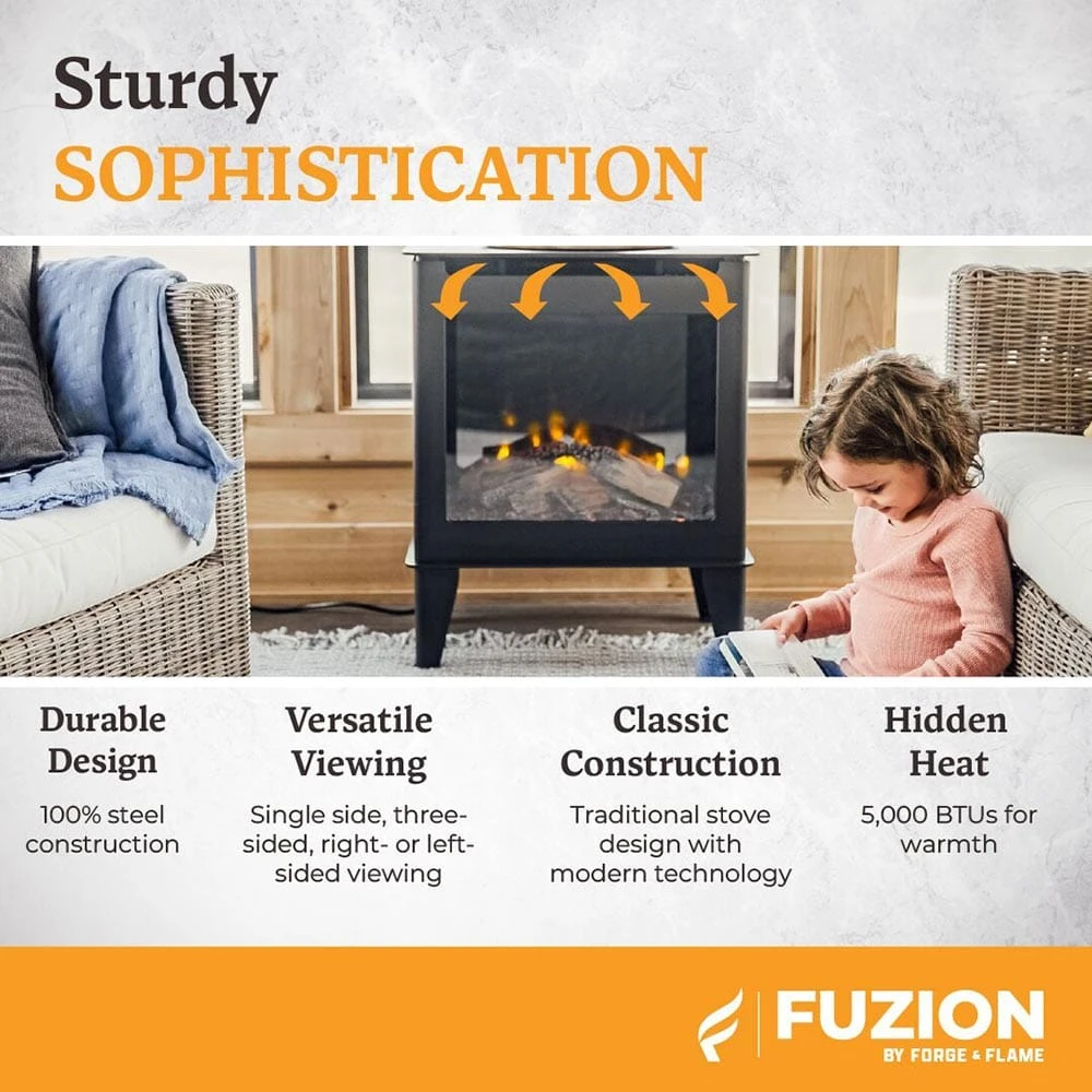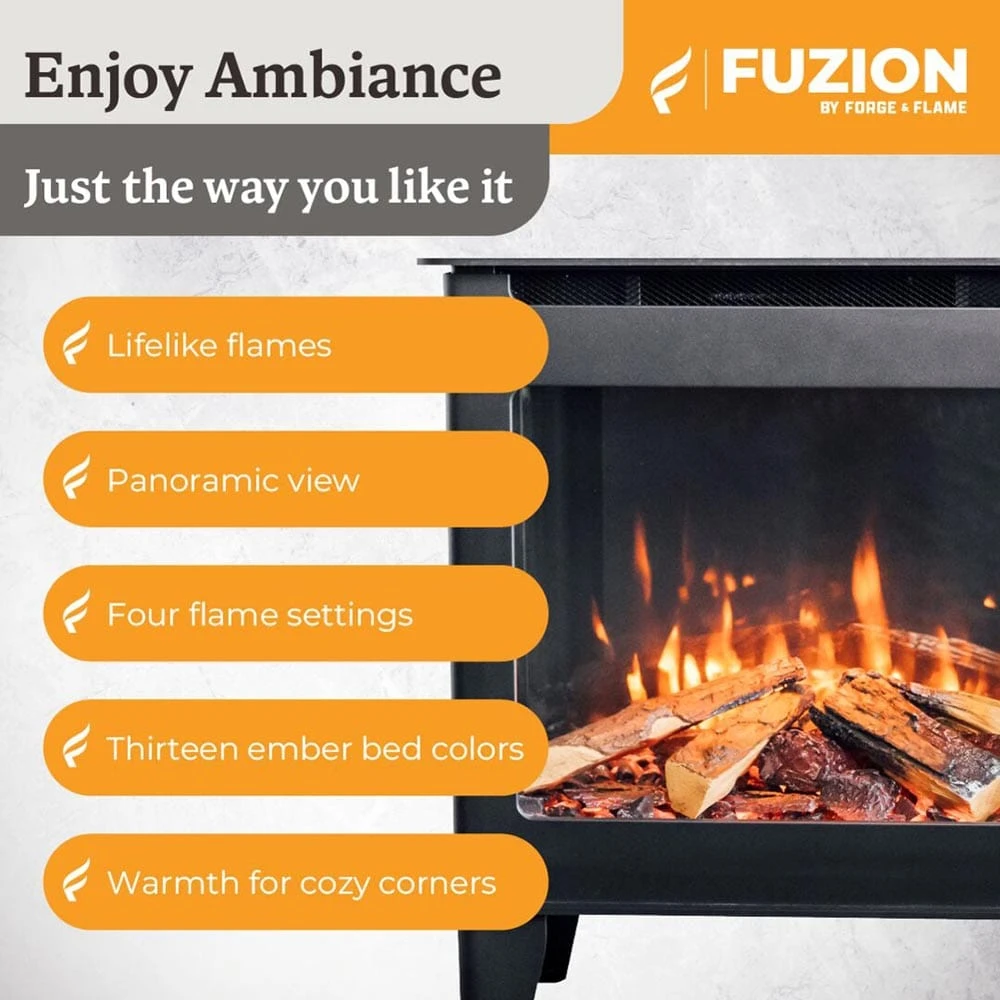 Crafted for the adventurous soul, the FUZION by Forge & Flame is the easiest way to capture the essence of a traditional stove with the ease of modern technology. Engineered for peak performance, this freestanding electric stove boasts 100% efficiency, delivering a robust, maintenance-free tranquility to any room. Flexible enough to install anywhere there is a 120V outlet, the FUZION can be placed on any level surface.
