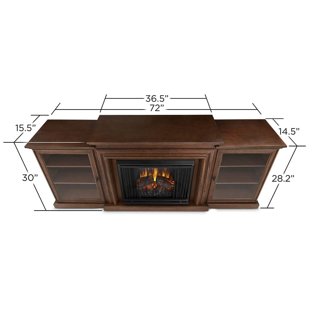 The Frederick Electric Fireplace Entertainment Center is a transitional piece of furniture that can be paired with either traditional or contemporary decor. With its simple cabinet styling and more interesting, trimmed fireplace molding, the Frederick is a fashion-forward piece of high end furniture. Capable of holding flat screen TVs up to 100 lbs in weight, you’ll be able to create the perfect home theater setup. Two glass-front, side cabinets offer plenty of storage for your electronics, accessories as well as decorative figures. With the press of a summary the VividFlame firebox will spring to life and create a bold and stunning artificial flame effect. Using bright, energy efficient LED lighting, each flame rises and flickers as if its coming directly from the burnt log set and glowing ember bed. The illusion is so realistic your family and guests may have a hard time believing that it isn’t a real fire.