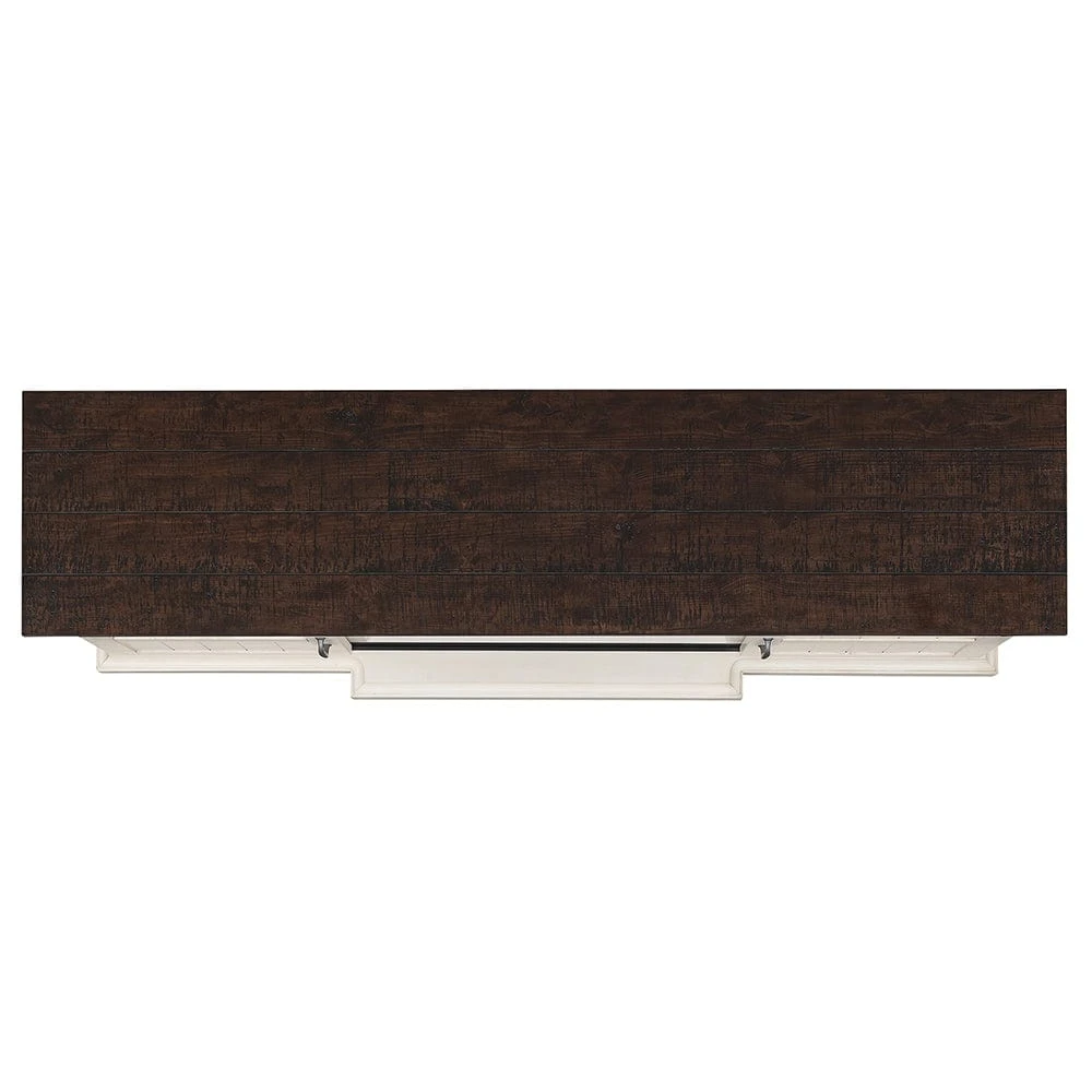 Give your room an added touch of coziness with the addition of the beautiful Hogan Farmhouse Electric Fireplace TV Stand. The modern farmhouse design of this cabinet makes it a popular style with current trends. Featuring a kickout hearth, functional sliding barn doors w/ planking details as well as pewter hardware, the Hogan hits all the details of a designer’s dream. The Weathered White finish and contrasting brown top create a stunning visual that complements multiple color pallets and design schemes. The center shelf is open and can easily accommodate your cable box or DVD player, while the two side cabinets offer additional concealed storage with 2 adjustable shelves as well as cord management/ventilation holes.
