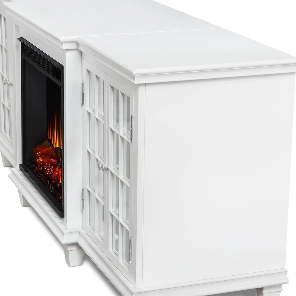 The Marlowe Electric Fireplace Entertainment Center is a classic piece of furniture that will undoubtedly withstand the test of time with its elegant beauty. Transitional in design, the bright white finish ensures the Marlowe fits just as comfortably in a traditional setting as it would in a contemporary one. It’s larger size and two side cabinets ensure you have more than enough space for all your needs, whether they be for electronics, collectibles or decorative accessories. The real showstopper of this console is the bright and vibrant VividFlame LED-lit fireplace. With realistic logs that glow from the inside as well as rhythmically dancing flames that appear to perfectly mimic real fire, you and your guests will have a hard time determining whether or not it is in fact real. The flame brightness can also be adjusted, allowing you to create the perfect ambient glow for your room.