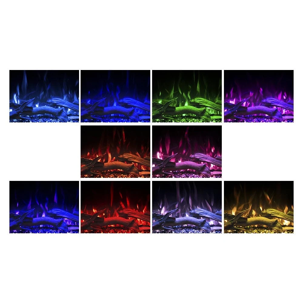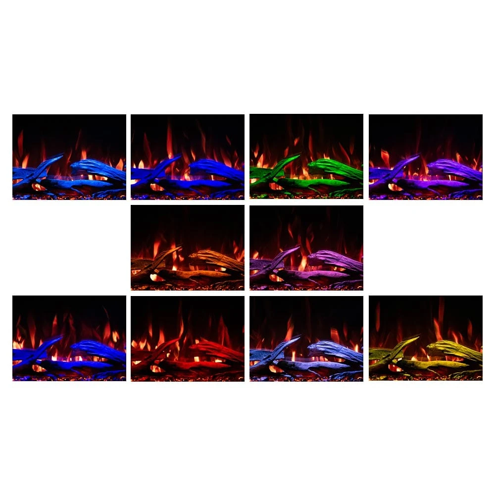 At the heart of this package is a 33-inch electric fireplace insert, offering a fully customizable flame experience. Choose from 10 flame colors, 4 flame speeds, and multiple brightness levels, along with adjustable ember bed colors to match your mood. The included realistic driftwood logs and glacier crystals add a refined touch to the flickering LED flames.