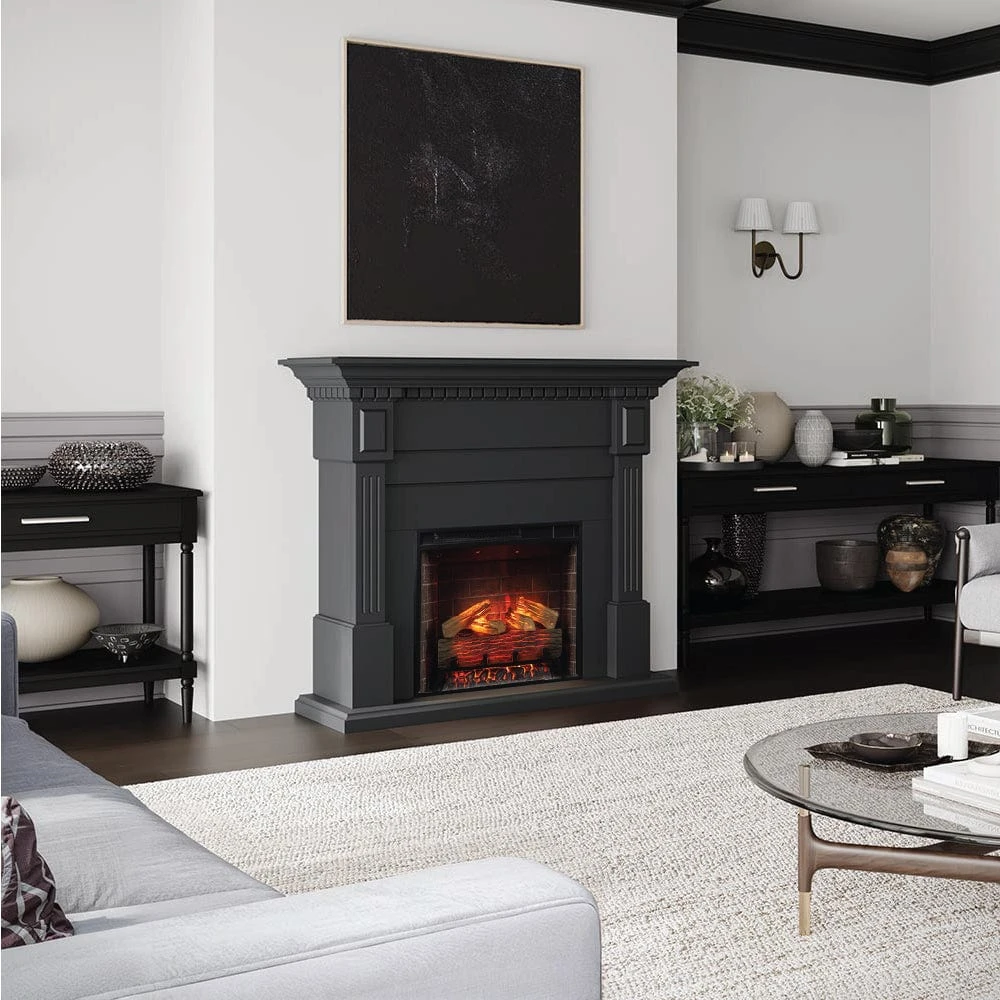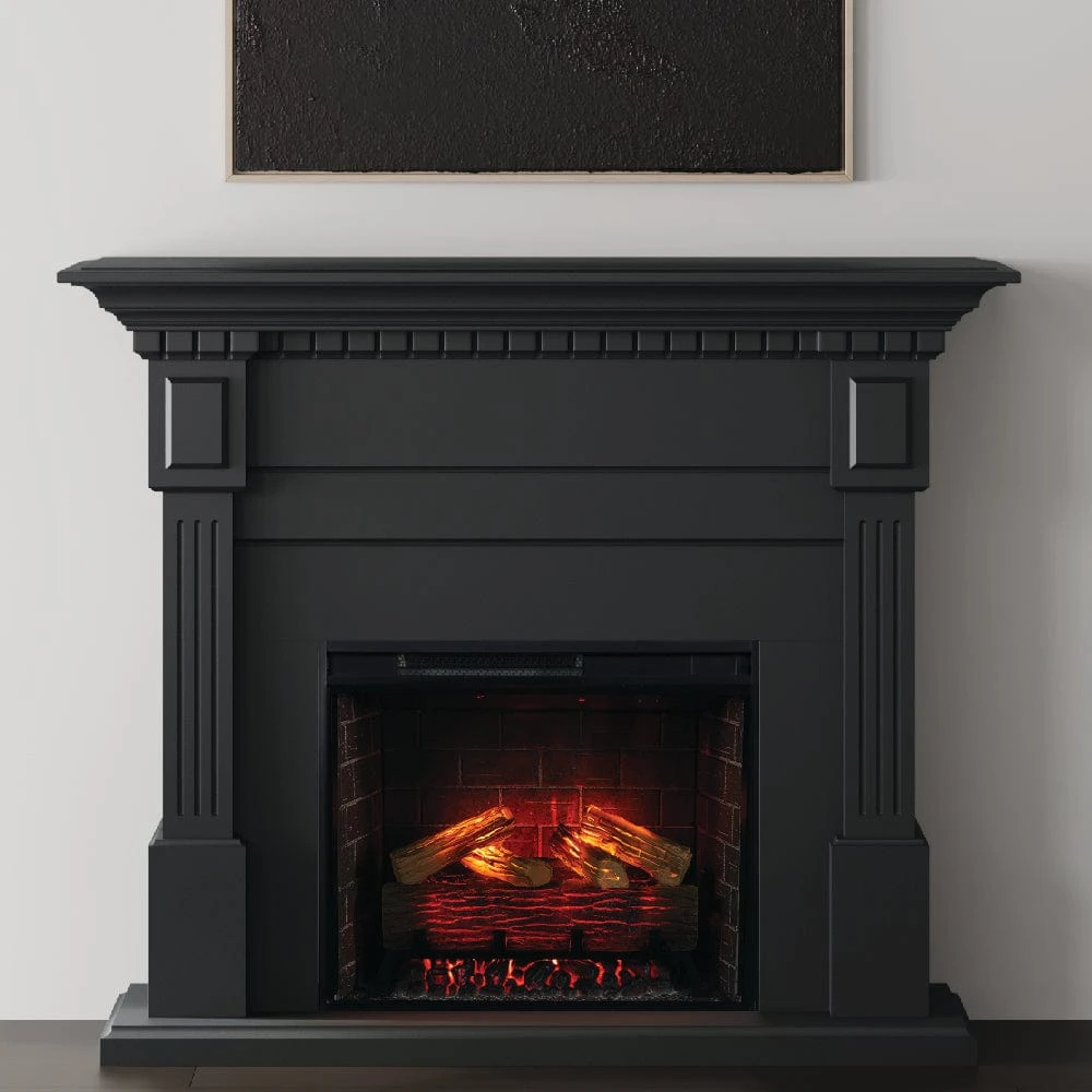 At the heart of this unit is a 28-inch smart electric fireplace insert with realistic resin logs and a glowing ember bed, illuminated by energy-efficient LED lighting. Customize your ambiance with five flame colors, adjustable brightness, and variable flame speeds. The infrared heater provides supplemental warmth for up to 1000 sq. ft., making it a cozy addition to any room.