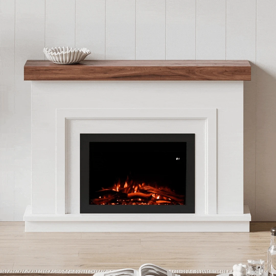 A true statement piece, the Modern Ember Leila Electric Fireplace Mantel Package blends casual luxury with modern convenience. Crafted from premium cast stone with a stucco texture, it features a burnished walnut wood mantel top, adding warmth and sophistication to its crisp white base. Perfect for both traditional and contemporary interiors, this mantel offers timeless appeal without the maintenance of a wood or gas fireplace.