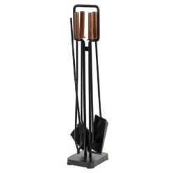 Our Modern Ember Levi 5-Piece Fireplace Tool Set is crafted with heavy-duty steel and fortified by a corrosion and heat resistant powder coating process that guarantees the safe maintenance of your fire. This toolset includes all the fireplace essential tools – brush, shovel, poker, tongs all organized on a sturdy stand. The smooth grain maple wood handles are beautifully crafted offering both refinement and a secure grip. With its sleek profile tailored for modern and traditional spaces, the black finish will be an eye-catching feature next to your fireplace hearth.