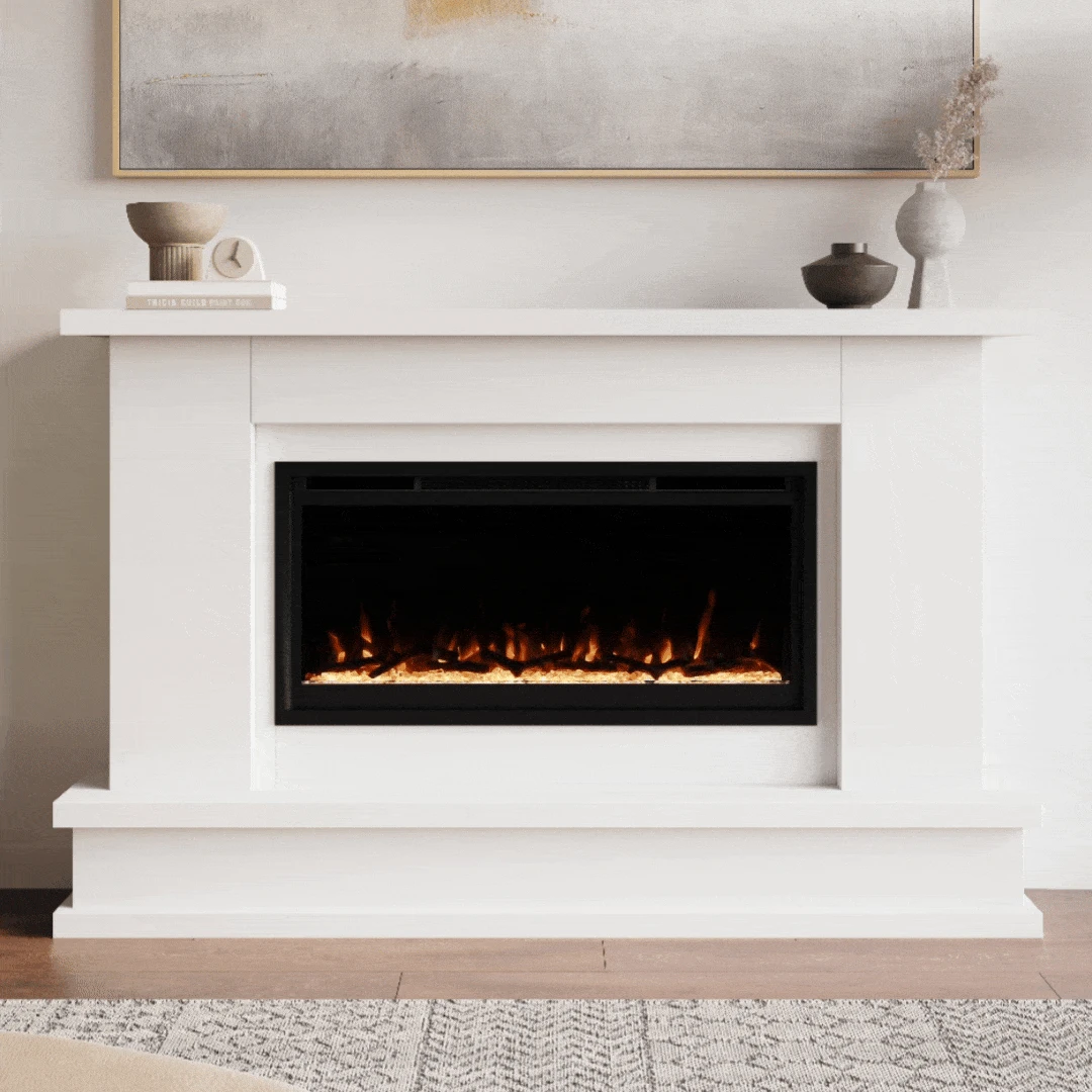 Modern Ember Patton Venetian Electric Fireplace Mantel Package In White