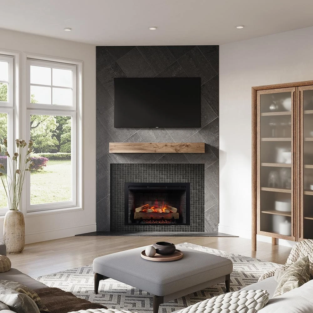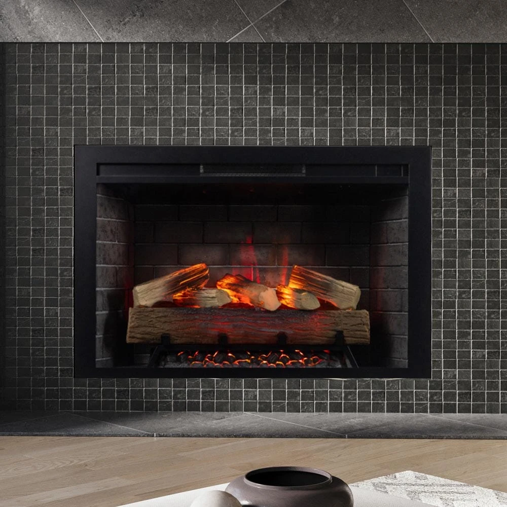 The Modern Ember Smart Electric Insert combines powerful heating capabilities with stylish design, and soothing flame effects. Loose yourself in the captivating flames and glowing logs that are enhanced by a brick patterned background for heightened realism and depth. With the Tuya app, you can effortlessly control the fireplace via Wi-Fi, adjusting the thermostatic supplemental heater from 64° to 82° in 2° increments. Operate the fireplace with ease using the digital touch panel, remote control, or your mobile device.