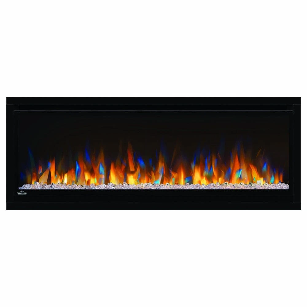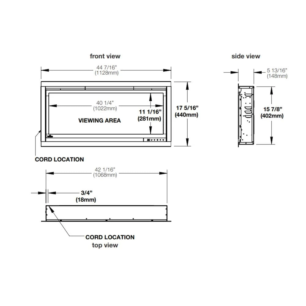 The Napoleon 42-In Alluravision Deep Wall Mount Electric Fireplace stands out in a crowd when it comes to flame effects, features and heating capabilities. This impressive & versatile unit can be installed one of two ways. Choose to fully recess the fireplace for a built-in installation, or surface mount with ease using the included hanging bracket. Additional options include standard 120V plug-in or 120/240V direct-wire power supply’s. Should you choose to plug in or direct wire to 120V, you’ll experience 5,000 BTUs of supplemental heat to warm areas up to 400 Sq. Ft. Alternatively, if you select hard-wiring to 240V, the heat output will increase to 9,000 BTUs for heating areas up to 800 Sq. Ft.