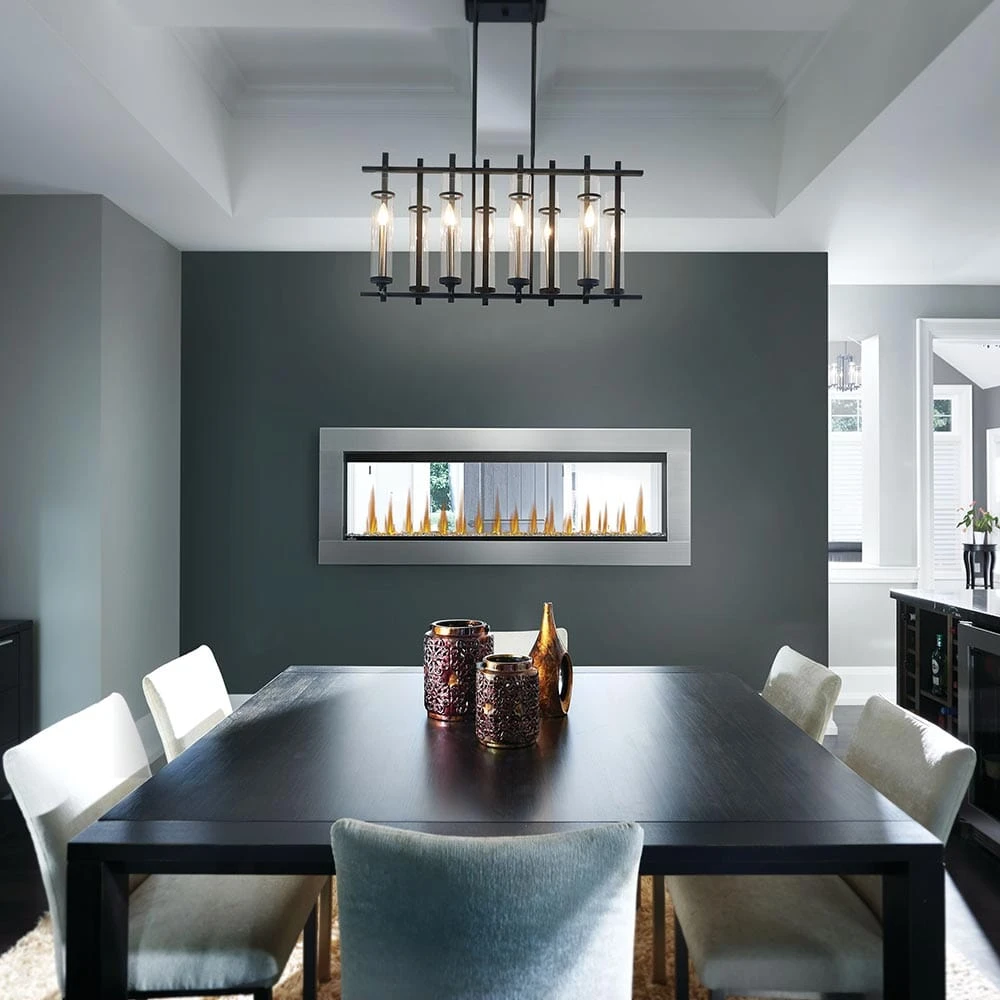 The Napoleon 50-In CLEARion ELITE See-Thru Electric Fireplace is a bold & unique focal-feature with its true see-through design. This advanced linear fireplace offers a convenient feature that allows for various stages of privacy. The patent pending privacy glass allows you to instantly change the fireplace from fully see-through, to semi see-through to opaque (not see through). This allows you the convenience of selecting the amount of privacy you desire between the two rooms that share the wall. The see-thru design of this fireplace not only adds a dramatic focal-point for your room, but it also gives the illusion of a larger space with the ability to see beyond and into the next room. Two thin black powder coated surrounds are included (one per side). This package also includes a thick depth stainless steel trim wall kit that is designed for use with installations into a double 2×4 wall. Use in a wall dividing a family room from a dining room, a sitting room from a bedroom or even a reception area from a waiting area, the possibilities are practically endless. As a direct-wired unit, the fireplace is capable of delivering anywhere from 5,000 BTUs for warming areas up to 400 Sq. Ft. (120V) or 10,000 BTUs for warming areas up to 800 Sq. Ft. (240V). With a stunning 3-D flame effect and adjustable brightness levels, the fireplace creates the appearance of real flickering flames with stunning accuracy. Choose from traditional orange flames, contemporary blue or a unique combination of the two. A stylish log set w/ topaz glass comes with the unit as well as the option to change to a clear crystal ember bed, the choice is yours. For an even more customized look, activate the ember bed lighting which gives you the choice of 15 beautiful color options (Orange, Red, Blue, Yellow, Green, Purple, Sky Blue, Purple/Red, White, Pink,Yellow/Green, Ice Blue, Orange/Red, Light Green, Magenta plus an autocycle setting). The ambiance created by this advanced lighting and projection technology is truly a sight to see and is sure to create a dramatic and elegant display for your rooms. A convenient multi-function remote control is included and makes operating the various functions of the fireplace a breeze.