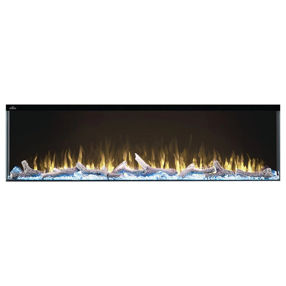 The Napoleon 60-in TriVista Primus Electric Fireplace is a truly unique and one of a kind option for your home or business. The first impressive feature is that it can be installed in 3 different ways, each with a unique appearance. There are 2 glass side panels included with the unit which can be used to make the fireplace a 3-sided, 2-sided or 1-sided installation. The choice is completely up to you, your installation restrictions and your desired end look. Wiring options include 120/240V direct-wire – If you hard-wire w/ 240V you’ll achieve up to 10,000 BTUs of supplemental heat which is the highest heat-output in its category.