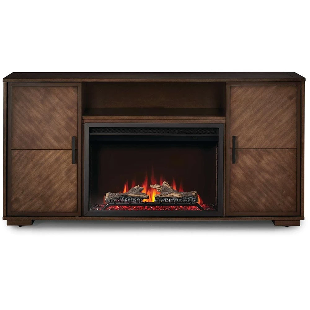 The Hayworth Electric Fireplace TV Stand is a beautiful and unique offering from Napoleon. With a modern appeal that would complement rustic as well as industrial decor, the Hayworth is an amply designed unit that has will meet all your needs out of a media console. The wide body of the unit allows it to accommodate flat screen TV’s up to 70″ in size, while the center shelf is the perfect location for you cable or streaming boxes. It’s easy to hide the wires from all your devices for a streamlined media center look. On either side, the concealed storage cabinets offer shelved storage for your various needs.