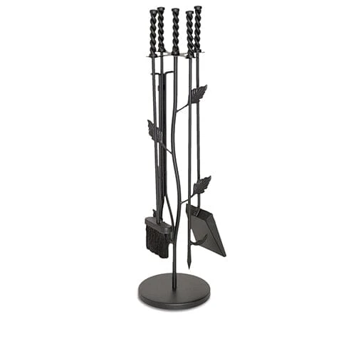 The Garden Leaf Tool Set from Pilgrim sports a curved steel tool stand which playfully sprouts leaves. The tools rest in a slotted holder and are supported by their twisting metal handles. Made from solid steel and finished in black, this nature inspired tool set will make an elegant statement to your hearth.