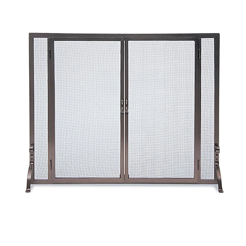 An all-time favorite of the American hearth. This screen is designed to fit most fireplace openings. Durable, heavy duty solid iron construction compliment the screen’s sleek hand forged handles that sit at the center of the large doors for easy access to the fire. Smooth bullet hinged doors allow for the door to completely open and quality block magnets will hold them securely closed.