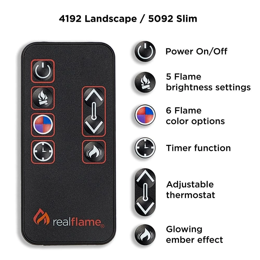 Illuminate your home or office with the contemporary appeal of the Real Flame Malie Landscape 67-in Electric Fireplace Mantel Package that mimics the look of Venetian plaster with a sleek matte finish. Part of the Real Flame VividFlame Landscape Series, the widescreen electric fireplace replicates the appearance of a genuine flickering fire without the need for a chimney or vents and conveniently plugs into a standard outlet. This indoor fireplace package features a mantel with a genuine wood finish, offering six flame colors, five flame brightness levels, an adjustable thermostat, timer function, and automatic safety shut-off. The electric fireplace delivers supplementary warmth for rooms up to 1,000 sq ft, and the infrared heater can be turn off for year-round enjoyment of the comforting ambiance of a glowing LED flames.