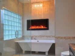 An 18-In firebox sits at the center of the unit and provides the ambient feel of a real wood burning fire, but without any of the work or danger associated with one. Flickering flames rise and dance from a glowing ember bed and log set, creating a relaxed environment for you to settle in to. With a fully integrated supplemental heater in the firebox, you’ll be able to add comforting warmth to your space without having to raise your whole home thermostat. This is a wonderful energy and cost savings solution, especially during the winter months. Two manual operable switches on the unit allow you to turn on the flames and heat with just a simple click.